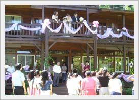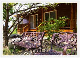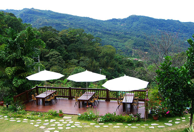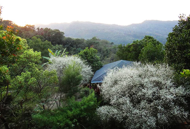 拂梅慕雲民宿區外的梅花樹下悠閒的景致。